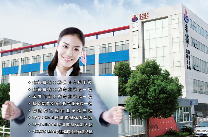 公司現(xiàn)具備建筑幕墻工程設(shè)計(jì)專項(xiàng)甲級(jí)資質(zhì)、建筑幕墻工程專業(yè)承包一級(jí)、建筑裝修裝飾工程專業(yè)承包一級(jí)、鋼結(jié)構(gòu)工程專業(yè)承包三級(jí)、建筑門窗行業(yè)資格產(chǎn)品制造一級(jí)、建筑門窗行業(yè)資格產(chǎn)品安裝一級(jí)、江蘇省標(biāo)準(zhǔn)化窗推廣證企業(yè)。